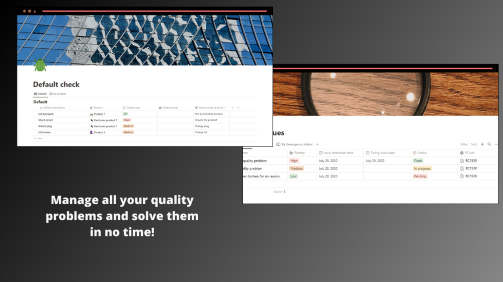 - Quality: Manage quality issues (to facilitate product improvement, 2nd hand reconditioning, etc.).
